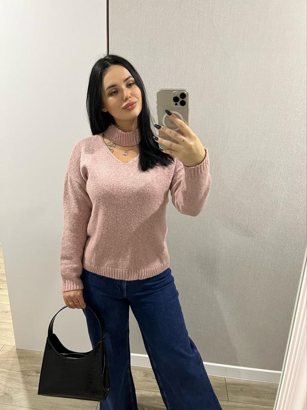 Замечательный шерстяной свитер пудрово розового цвета, теплый, размер л, надевала несколько раз