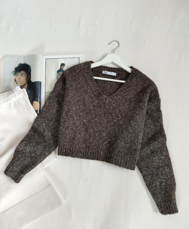 🌿шоколадный свитер от Zara свободного кроя, ткань тепла, содержит шерсть 9% Размер:L Замеры:ПО груди 60 см, длина 46 см, длина рукава от горловины 70 см