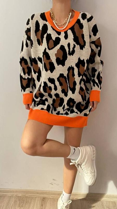 💳 Цена 800грн 🏷️ Леопардовая туника свитер Цвета: голубой, оранжевый Размер: единый 42-46 Тканина: акрил 70% вовна 30 % Замеры ОГ -110 см Длина-77 см Рукав-50 см ⭐ Качество 🔟 з 🔟 Производство Турция 📌 Фото реал