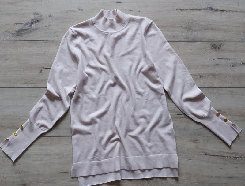 Мягкая приятная к телу кофта, подойдет под шею, больше продленная.Очень красивые рукава. Розмір по бірці XC, можна на С. рукав 59 см.длина 61 см.зади 65 см, ширина под руками 43 см.