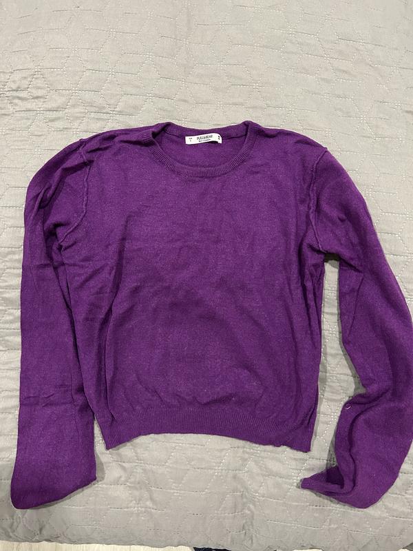 Светер в хорошем состоянии. Размер L, но у меня S и он хорошо прялся на меня. Поэтому подойдет больше для девушки с размером S или М.