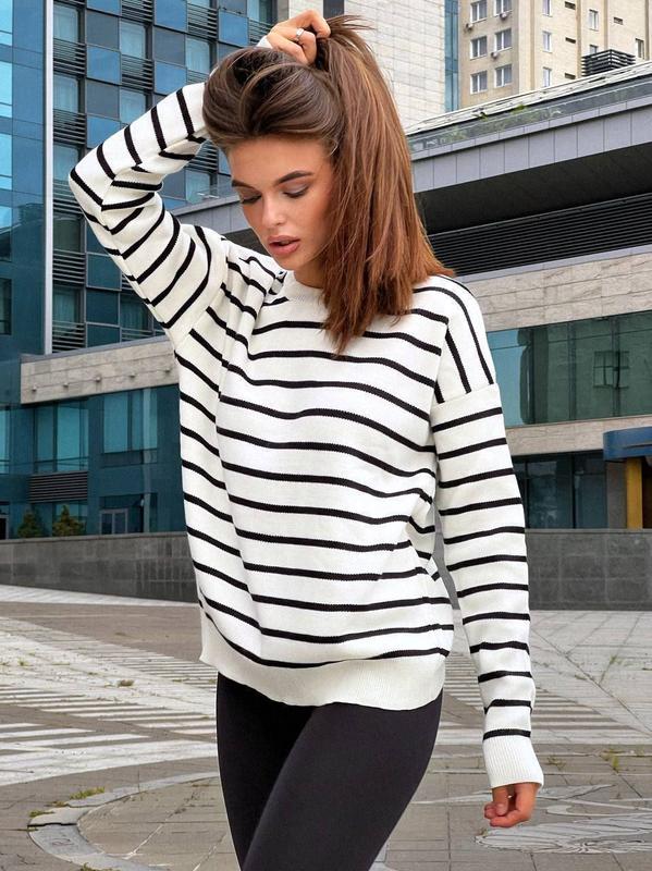 💙💛В наличии!!! 4150 🔔 🔸Теплый полосатый свитер в стиле оверсайз🔸 🔹Производство - Турция 🔹В РЫЧАНИЕ - 50 % коттон, 50% акрил. Мягкий, не колется 🔹Размеры - универсал ( 42-46) 🔹ОГ - до 106 см 🔹Ширина по низу свитера по резинке - 50-51 см 🔹Длина - 60-61 см 🔹Длина рукава от горловини - 70-71 см ✅ Цена - 650 грн