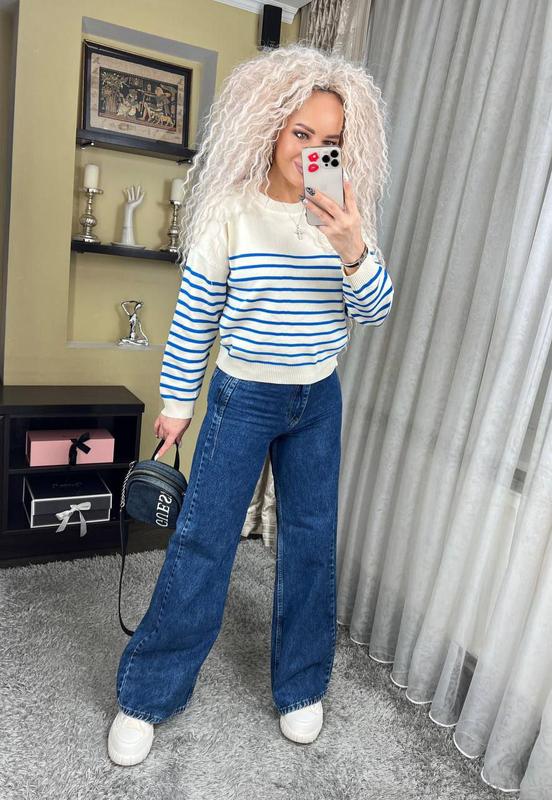 🏹НОВИНКА 🏹 Светр у смужку 4415 🌲 Матеріал - акрил (тонке машинне в’язання ) 4 кольори (чорно-білий, біло- чорний, бежевий з червоними смужками та беж з синіми смужками) Розмір Універсал 42-46 Ширина 52-60 Довжина 56 Рукав від горла 73 Ціна 690 ГР
