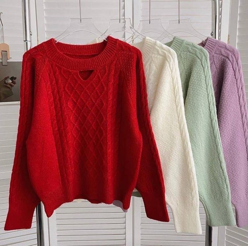 Стильний в'язаний светрик з вирізом🥰 Мод 1066 Колір: айворі, оливка, червоний, бузковий Розмір: універсал 42-46 Тканина: вовна з акрилом Довжина 55см Ціна : 745 грн