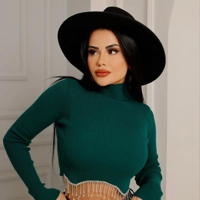 ❗️Отримали❗️ 🔝Укороченные свитера с высюлькой🔝 производство Турция🇹🇷 машинная вязка рубчик (акрил 100%) украшение только спереди размер oversize 42/46 длина 45 см рукав 63 см огрудья 70-100см цвет черный, зеленый 650 грн rich