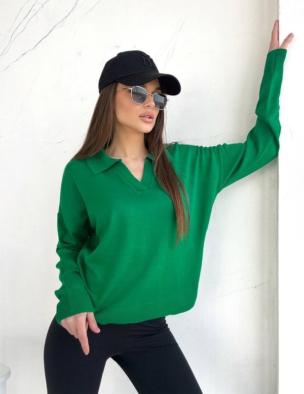🔝 СВЕТР ⠀ 🛍 Цена 560 грн ⠀ 🔘Артикул: B1406/64 🔘Ткань: тонкая вязка Состав: 50% коттон, 50% акрил 🔘Размер: 42-46 (единственный) 🔘Цвет: черный, белый малина, зеленый 📏 Замеры: ОГ - до 108 см Длина - 54-55 см Длина рукава - 70 см ✍️ Легкий весенний джемпер с воротником - поло.