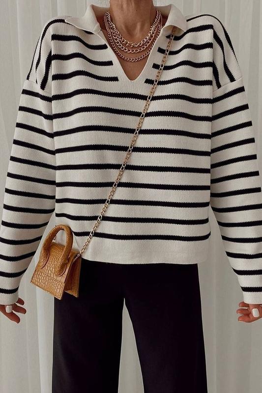 🌷Новинка🌷 Женский свитер «Поло» оверсайз в полоску. Стильная и любимая модель. Отличное качество💯 Реал фото 👌🏻 # 3051 ◾️Производитель Турция ◾️Цвет: белый,черный. ◾️Размер единый 42-46 ◾️Склад тканини: 70% Акрил, 30% Вовна Цена 600 грн