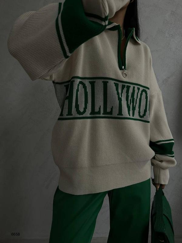 ▫️Виробник Туреччина ▫️Кольори: зелений, червоний ▫️Розміри: універсал 42-46 ▫️Тканина: трикотаж. ⠀ Стильний светр оверсайз «Hollywood» з комірцем. Чудово комбінується з джинсами та лосінками🥰 ⠀ Модель 3052