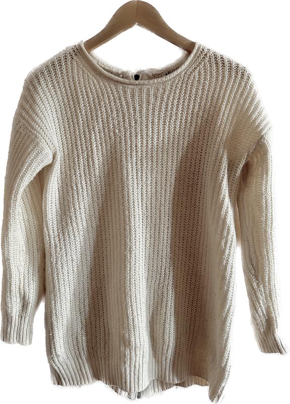 Светр молочного кольору Размера S, подойдет и на небольшую М Есть следы ношения и колтуны Сзади на всю длину молния