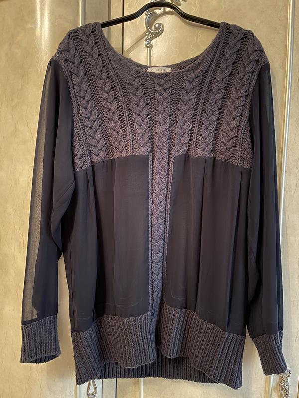 Очень красивый женский свитер Вязка + прозрачный шифон