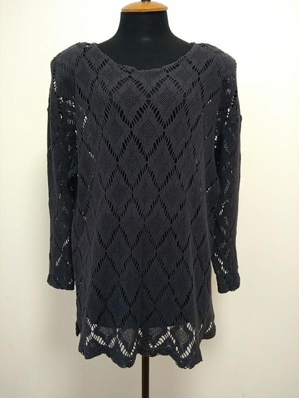 Ажурный лёгкий свитерок ровного покроя,с небольшими разрезами по бокам. Бирок нет. Предположительно подойдёт на размер XL-2XL-3XL,точнее по замерам,трикотаж тянется: длина 73 плечи 63,плечо спущенное длина рукава 47 одно плечо 22 ПОГ 60,тянется до 80 ПОТ 54,тянется до 74 ПОБ низ 59,тянется выше разрезов до 75 высота одного разреза 5 глубина выреза горловины спереди 10 высота проймы 24,тянется до 30 ПО бицепса 21,тянется до 27 ПО в локте 15,тянется до 21 ПО низа рукава 11,тянется до 13. Состав не указан,предположительно хлопок. Состояние очень хорошее,не идеальное,так как внизу сбоку на рукаве зашито - насколько заметно можно увидеть на последнем фото. Цвет изделия чёрный с оттенком темно-синего,самая точная цветопередача на первом фото. Высылаю после полной оплаты. Автоматические заказы принимаются. Хороший вибор одежды по приятным ценам,ежедневные распродажи. 🎉Інформацію про акції/знижки/розпродаж можна прочитати у розділі "Про мене"🤗
