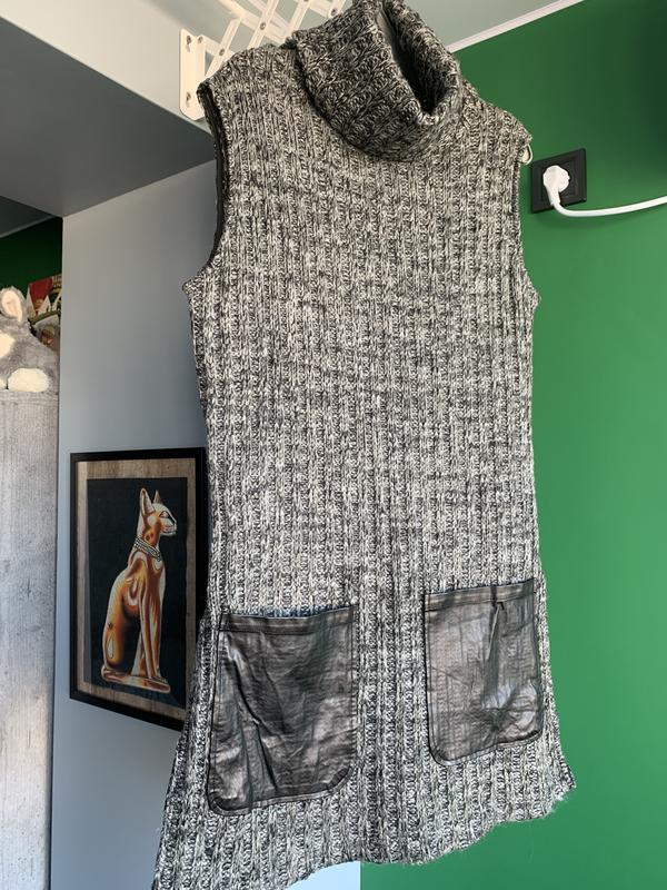 Приятный к телу, очень теплый свитер с большим воротником. Красиво тянется. Карманы из экокожи. Шерсть с вкраплениями.