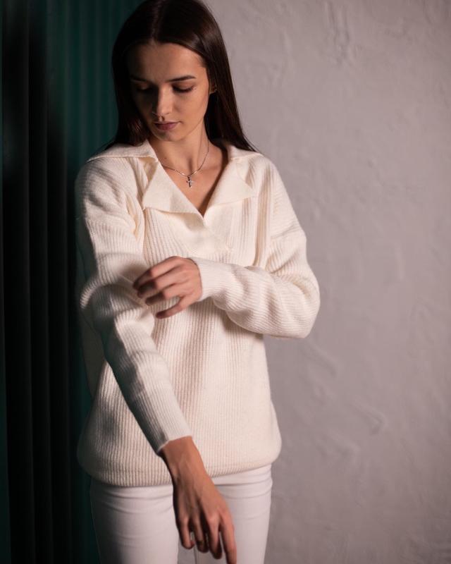 Если в мире и снует любовь с первого взгляда, то этот свитер-поло — это именно то. Ведь он ну просто ВАУ. Здесь идеально все - цвет, посадка, материал. Очень мягкий, приятный к телу, теплый. Размер: S-M one size Цвет: молоко