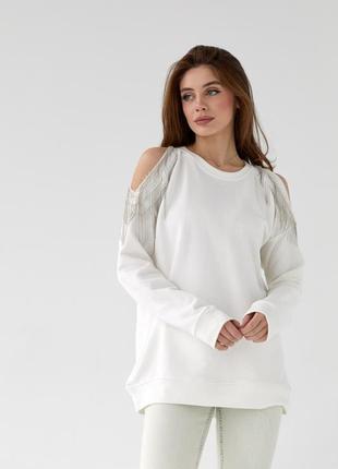 Однотонная кофта с вырезами на плечах
