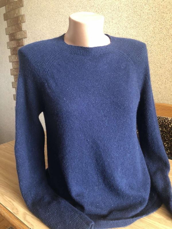 хорошего качества приятный и нежный на ощупь хорошего качества приятный на ощупь мягкий,оттенок темно синий нажаль фото не передает настоящий цвет.Фасон свободный теплый, совсем не колючий. Базовая модель, не выходящая из моды, впишется в любой образ и будет служить вам долгое время. Замеры: Длина свитера65см, Длина рукава от горловины 75см, Ширина 48см,