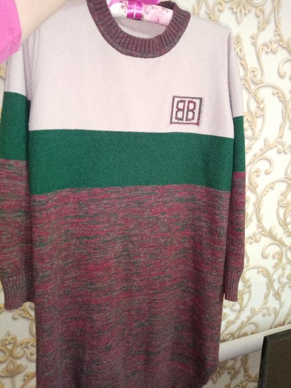 Туничка на зиму, осень, весну под лосины или плотные колготы Класное качество, не колетса, не кашлатитса, не вытягиваетса. В идеале одета пару раз(мне короткая😞) Замеры Длина 89 Ширина по линии груди 52 Рукав 54