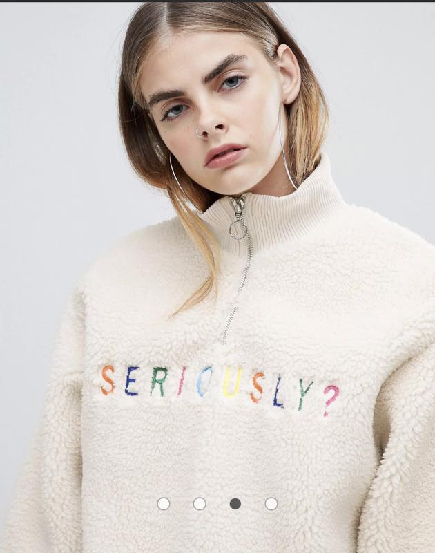свитер Sherpa с застежкой-молнией спереди и надписью «Серьезно». В идеальном состоянии, теплая и очень удобная, из новой коллекции