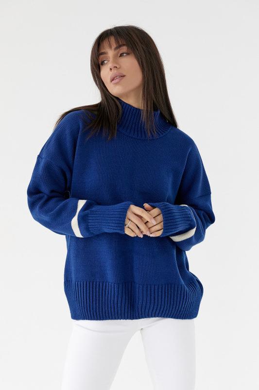 Вязаный женский свитер. Размер универсальный 46-54. Состав - 50% шерсть 50% акрил. Рост модели на фото 168 см. Очень стильный свитер свободного кроя, воротник стойка. Отличный выбор в зимнюю пору года.