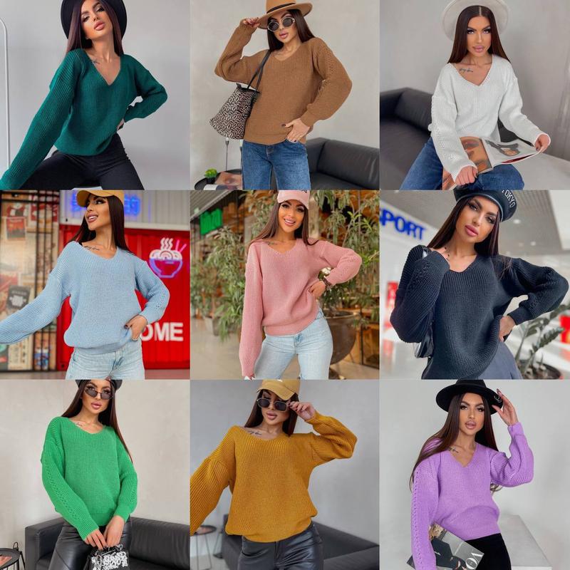 Светр Модель 5025 Розмір універсальний 42-48 Склад 30% акрил, 70% вовна Кольори: бузок, молоко, гірчиця, блакитний, пляшка, пудра, чорний, шоколад, м’ята, сіро-сталевий Заміри: - довжина 62 см - ширина 55-68 см - довжина рукава від горловини 70 см