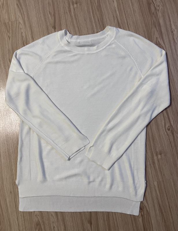 Нежный реглан,свитеров На ощупь нежный Размер М Длина 66,5см Длина сзади 73см Длина рукава 74,5см(от горловины) ПОГ 49,5см Поб. Резинки снизу 47см(разрезы сбоку)