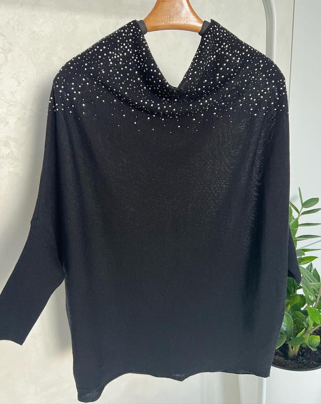 Вечерняя кофта, свободного кроя с камушками сверху, цвет черный, размер L, но подойдет как на S так и на M