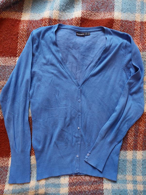 синяя кофточка, застегивается спереди на пуговицы. длин-63см, п.г.-46см, рукав-61см