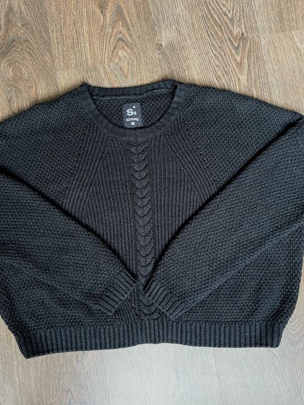 Светер черного цвета На фото немножко доказывает сам цвет Размер S, подойдет на М Свитер немножко укороченый Состояние очень красивое, не имеет катышек и затяжек Если нужны замеры пишите)