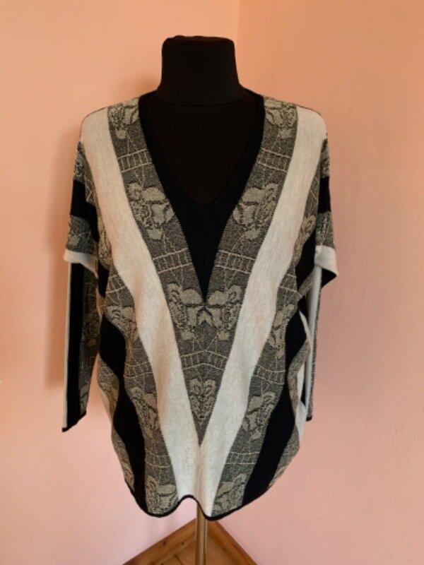 Класна кофта демонстровано на манекені 52 розміру. Довжина- 69см, рукав від горловини-68см, пог- 66см( фасон кажан), поб- 57см.