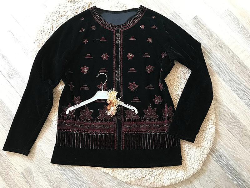 чорна 🖤 жіноча кофта, бархатна. довжина 71см. напівобхват в грудях 58см рукав від плечового шва 62см. б/у. Мінімальне замовлення на 100грн