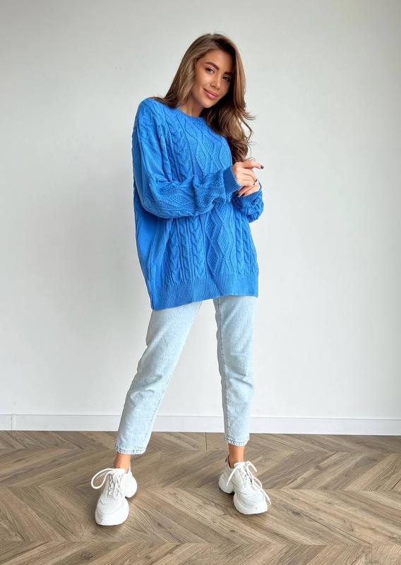 Удлиненный свитерик 🌺 • материал: акрил • размер свободный • цвета: голубой • длина 72 см • ширина 75 см