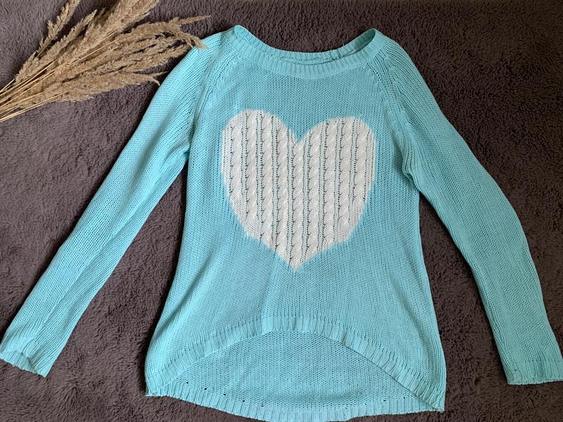 Голубенький светр . Зад удлиненный. Перед обычным. Размер М-С