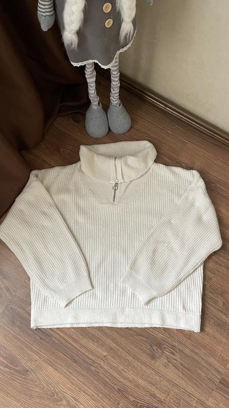 Белый свитер, с широкими рукавами. Горловина на замочке, подкачивается.
