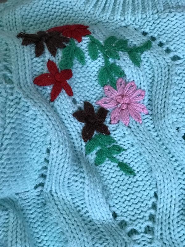 Продам женский свитер, не ношен цвет бирюзовый примерно как на первом фото бирки срезаны смотрите замеры :грудь-47,плечи-38,рукав-50см,длина по спинке-53см