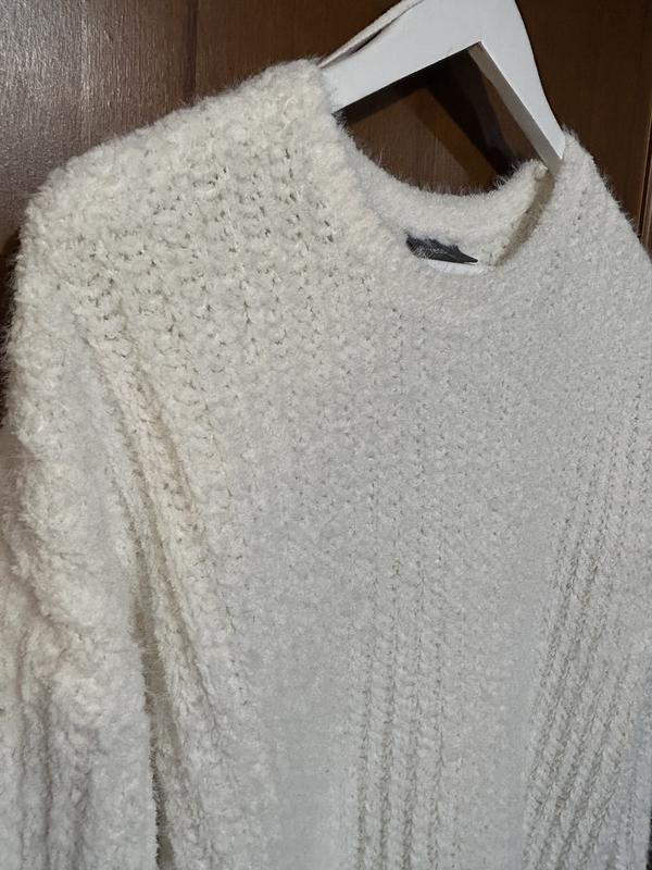 Свитер в идеальном состоянии, крично -пломбирного цвета. Пушистик, мягенький, очень приятный к телу. Фасон свободный, оверсайз. Можно стилизировать под джинсы и плиссерированную юбку, леггинсы и кожаные брюки. Размер М. Ориентируйтесь на замеры Замеры Длина - 60 см Плечи приспущенные - 64 см Рукав - 56 см ПОГ - 54 см ( под рукавами) ПОТ - 52 см Ширина по низу -52 см