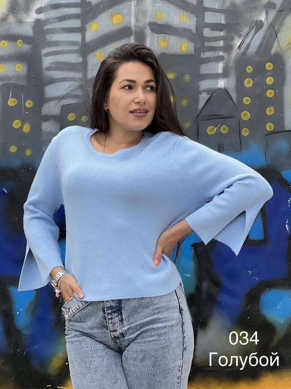Жіночий теплий світер з мягкої плотної ангори. Мягусінький і комфортний до тіла світерок, подовжений по спині. На рукавах розрізи. Гарно тягнеться. В комплект до світера йдуть аксесуари у вигляді пердини на рукава и брошка з стрічки і перлини ПОГ 48 Довжина по спині 62 Довжина спереду 54