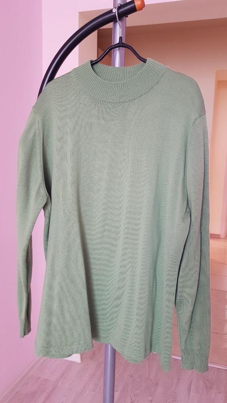 Тонка, тепла кофтинка. Колір салатово-зелений, не яскравий, 3 фото. Вільний крій. Підійде на розмір 52-58. Є невеличкий дефект низ спинці (останнє фото), ціна вже знижена. Плечі 44 НОГ 58 Довж по спинці 70 Довж рук 61