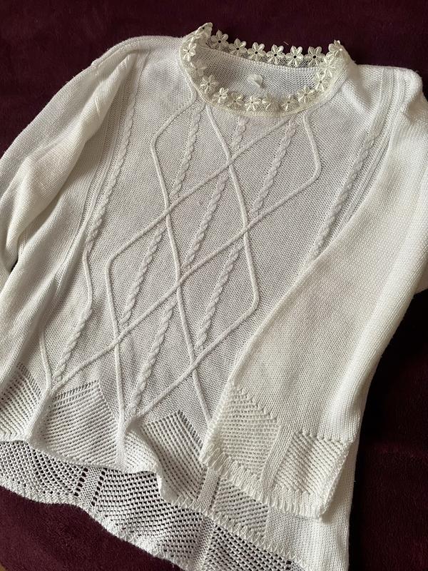 Кофта Указан размер XL, но она маломерит Подойдет на самом деле на XS-M Очень красивое горлышко с цветочками Нежно смотрится