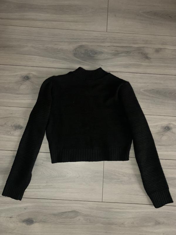 Кофта укороченная вязаная черного цвета под шею