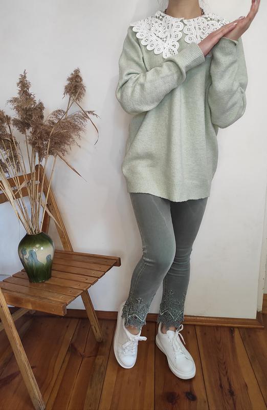 невероятный свитерик с воротничком от F&F размер указан L, но отлично сядет на М одето на S, кто любит оверсайз, можете пробовать ПОГ - 56, длина - 65 состояние идеально 🏷️ 369 грн