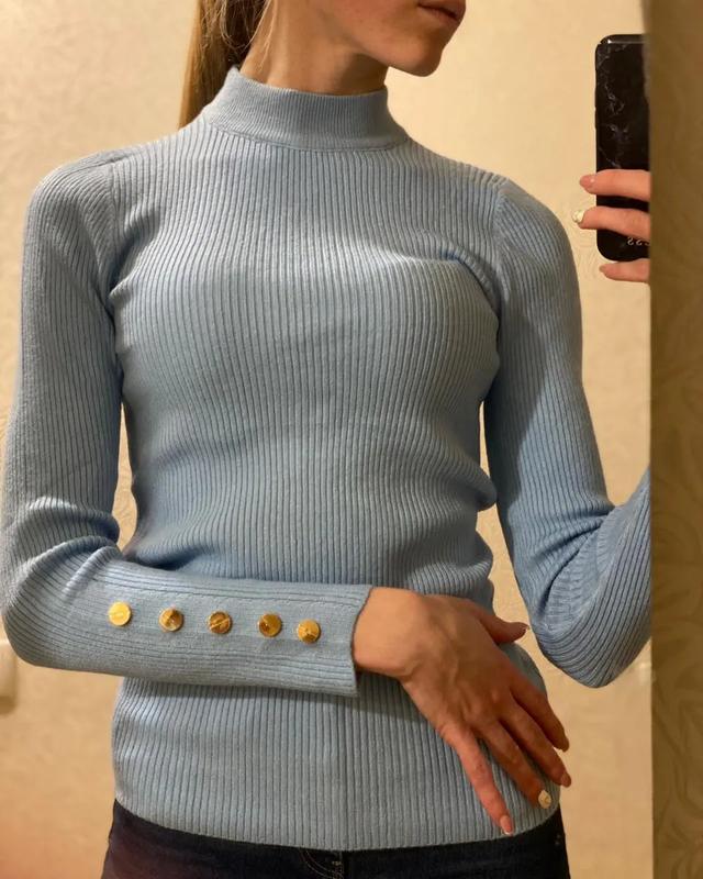 Гольфик, голубого цвета, материал хорошего качества. Щ имитированными пуговицами золотистого цвета. 🌸 Подойдет на размер 42-44
