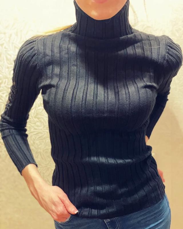 Гольфик, черного цвета, материал хорошего качества, с интересными вставками на рукавах🌸 Подойдет на размер 42-44