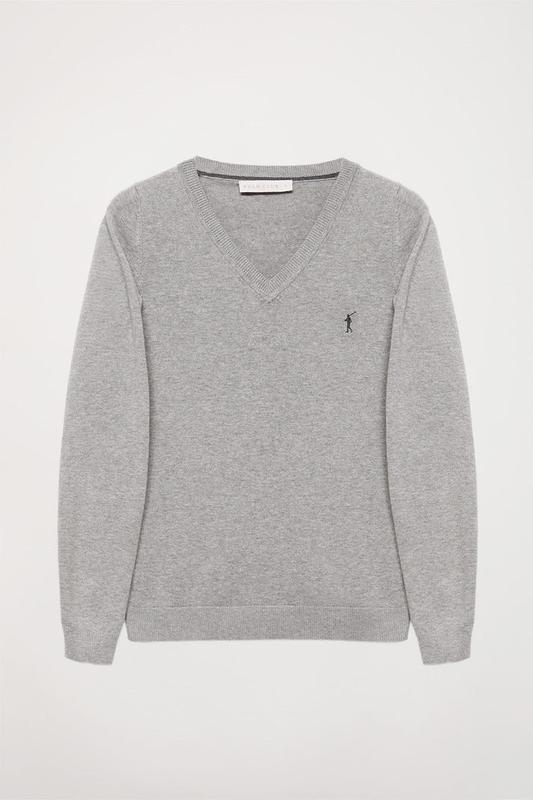 Базовий сірий джемпер POLO CLUB з логотипом вишивкою синього кольору в дуже гарному стані, в розмірі L (також гарно виглядає на S та М)