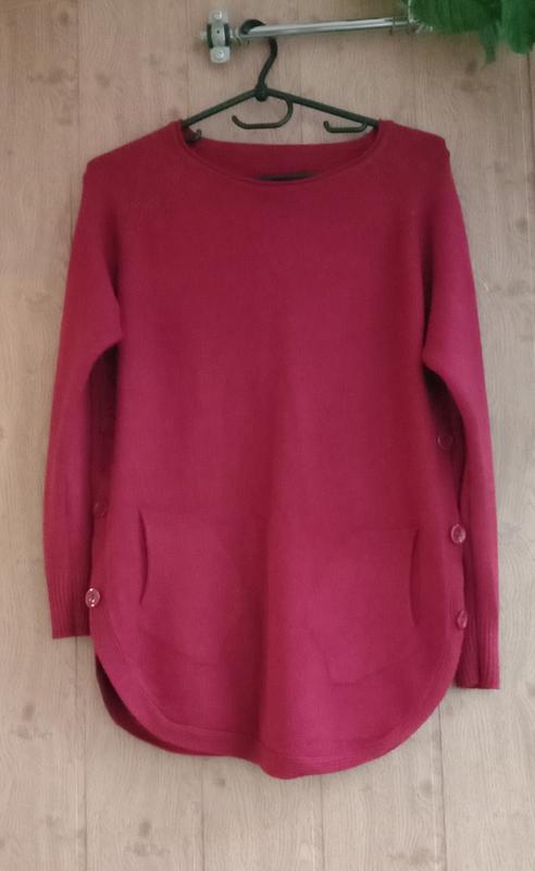 Красивая удлиненная кофточка насыщенного бордового цвета, в отличном состоянии, может быть, как туника под лосины или леггинсы. Сбоку на пуговицах, что добавляет необычности данной модели. Размер 48-50 L/XL, замеры по проске.