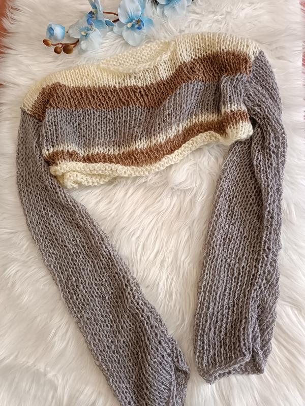 Кроп светопер короткий рукава обьемные паутинка шерсть ручной работы