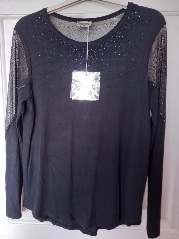 Кофтина женская, тонкий трикотаж, вставки сетка, украшенная камушками. Производитель Турция. Размер L Ог.100 О.ст.100 Дл.70 Цена 1150гр