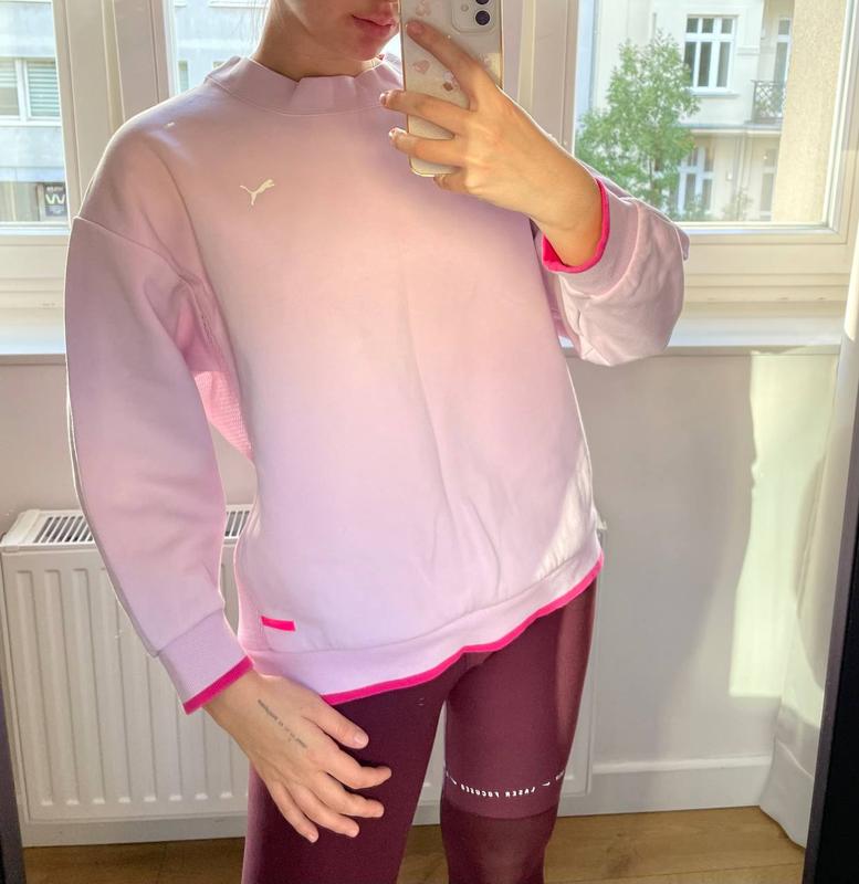 Очень красивый розовый свитер от puma с сеткой на спине Размер S Есть мини нюанс на последнем фото( мини зацепка)