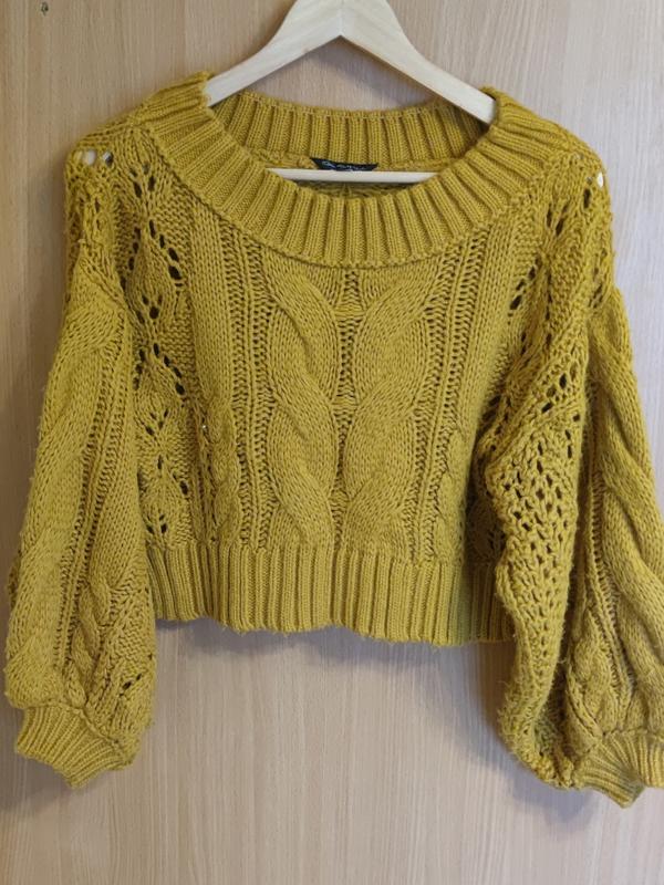 укороченная кофта, с широкими рукавами, цвет тяжело передать на фото- горчичный темный, чем на фото. состояние классный. указано 32 размер, но у меня размер М, возможно, чуточку замаленка на меня, более быстро закоротка. по дополнительным вопросампрашивайте в сообщениях