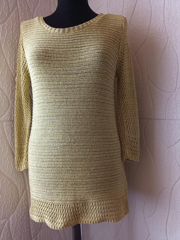 Артикул К 0303 Свитер в отличном состоянии, без дефектов. Состав коттон, акрил, люрекс. Рукав 3/4. Ткань тянется, мягкая. Цвет ярче, чем на фото. 4 фото цвет в реальности. Замеры - плечо 5 см, - длина рукава 50 см, - длина по боковому шву 47 см - длина по спинке 59 см, - полуобьем по груди 42 см, - полуобьем по талии 40 см, - ширина плеч по спинке 38 см. Замеры сняты в спокойном состоянии изделия. ❤️ пожалуйста ориентируйтесь на замеры. Отправка новой почтой и укрпочтой при оплате на карту. Наложенного платежа нет.