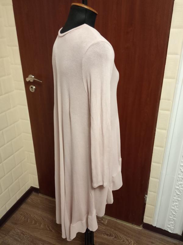 Мтдовжена кофтм туніка Італія. Дуже ніжний пудровий колір. Заміри: рукав-62, пог-48, плечі-40, довжина спереду/ззаду-60/110.