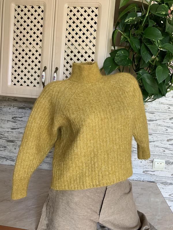 Світер з неймовірно хорошим складником Розмір S/XS в ідеальному стані Колір найбільш наближений до реального на третьому фото (телефони мають різну кольоропередачу) Склад є на фото 38% вовна 26% вовна альпаки 33% поліестр 3% еластан Довжина по спині 46 см Довжина рукава від горловини 56 см Пог 47,5 см Внизу 46,5-60 см